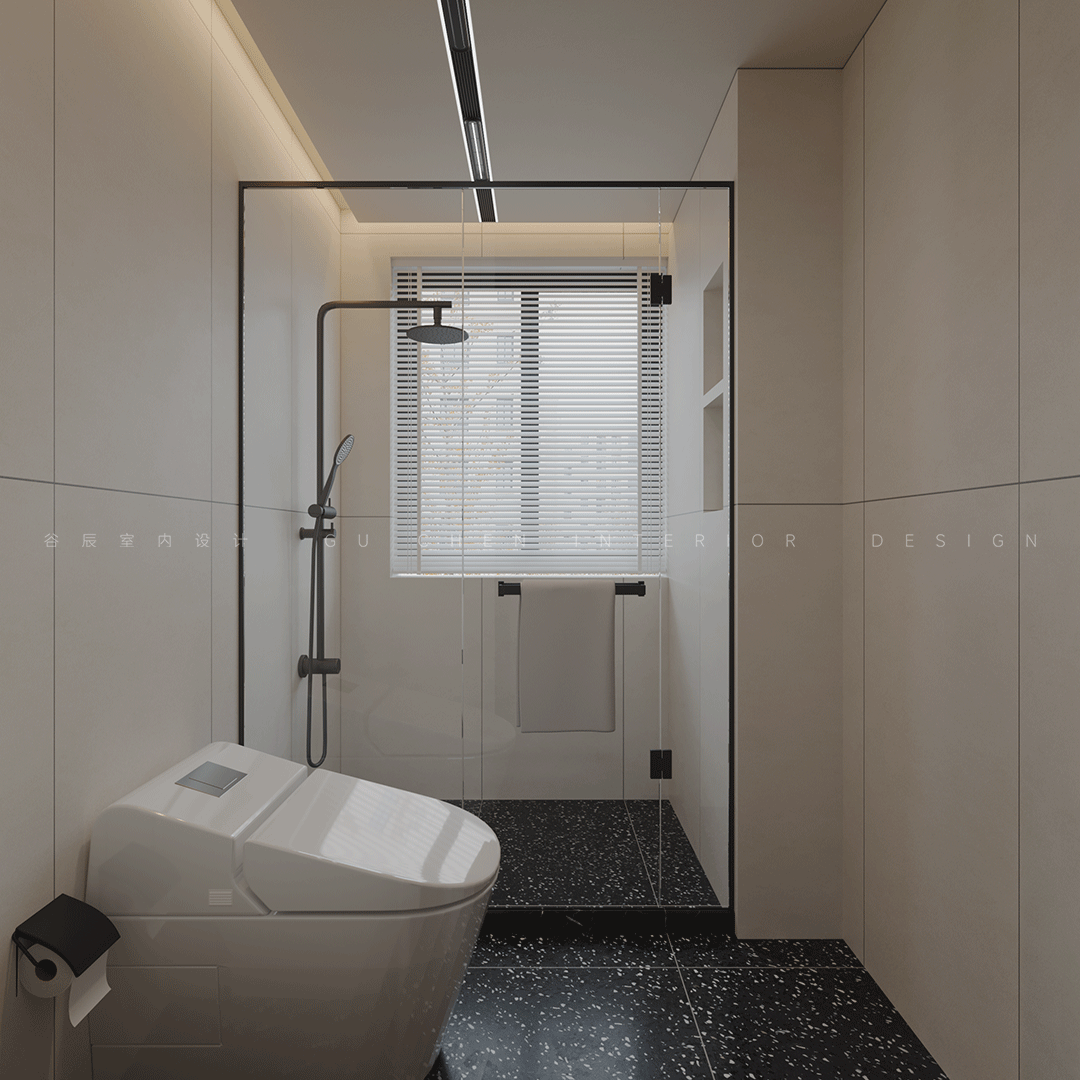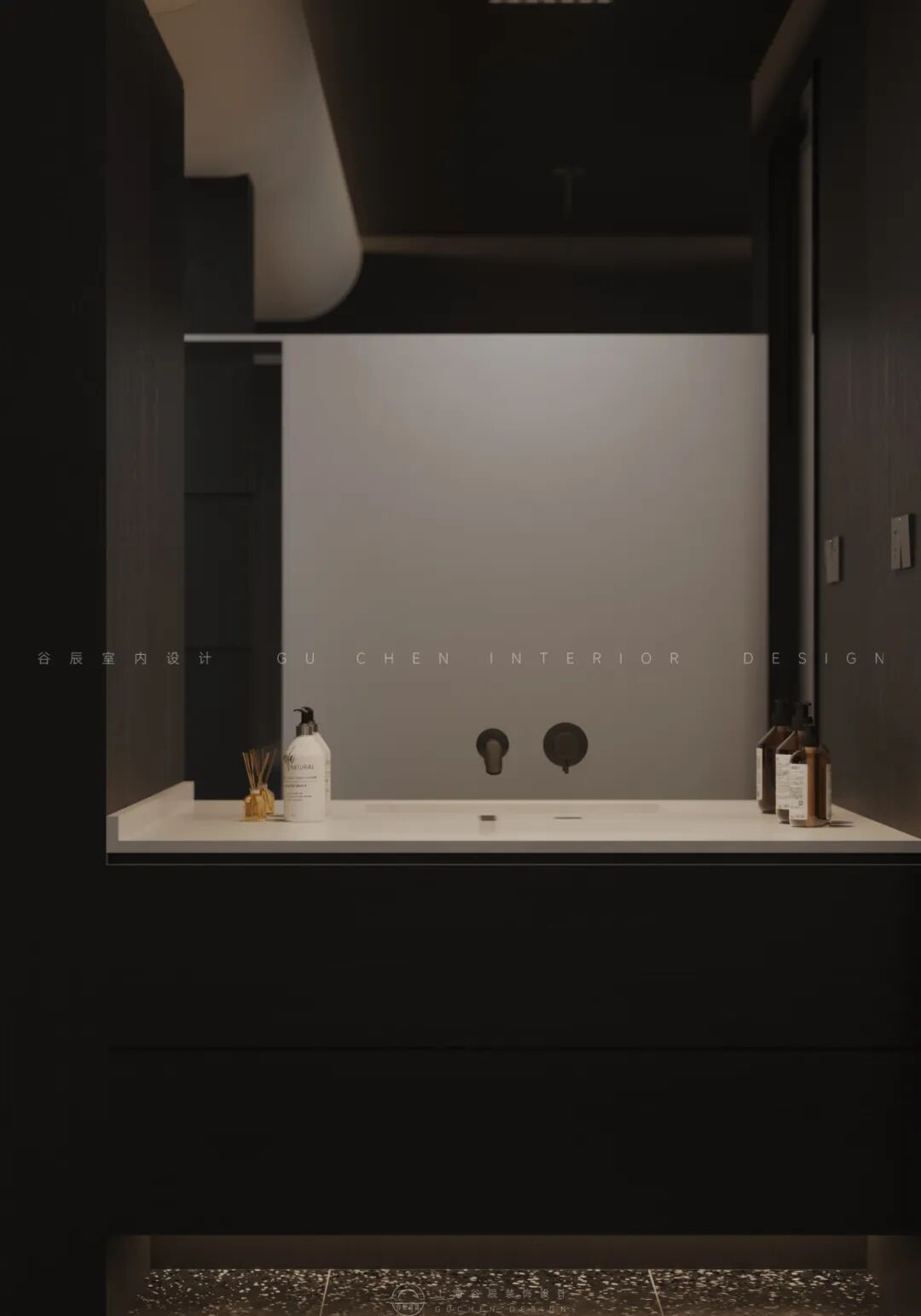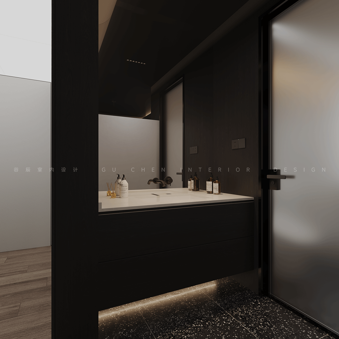 黑白相间的卫生间简约而深邃,散发出一股摩登与纯净的独特美感。