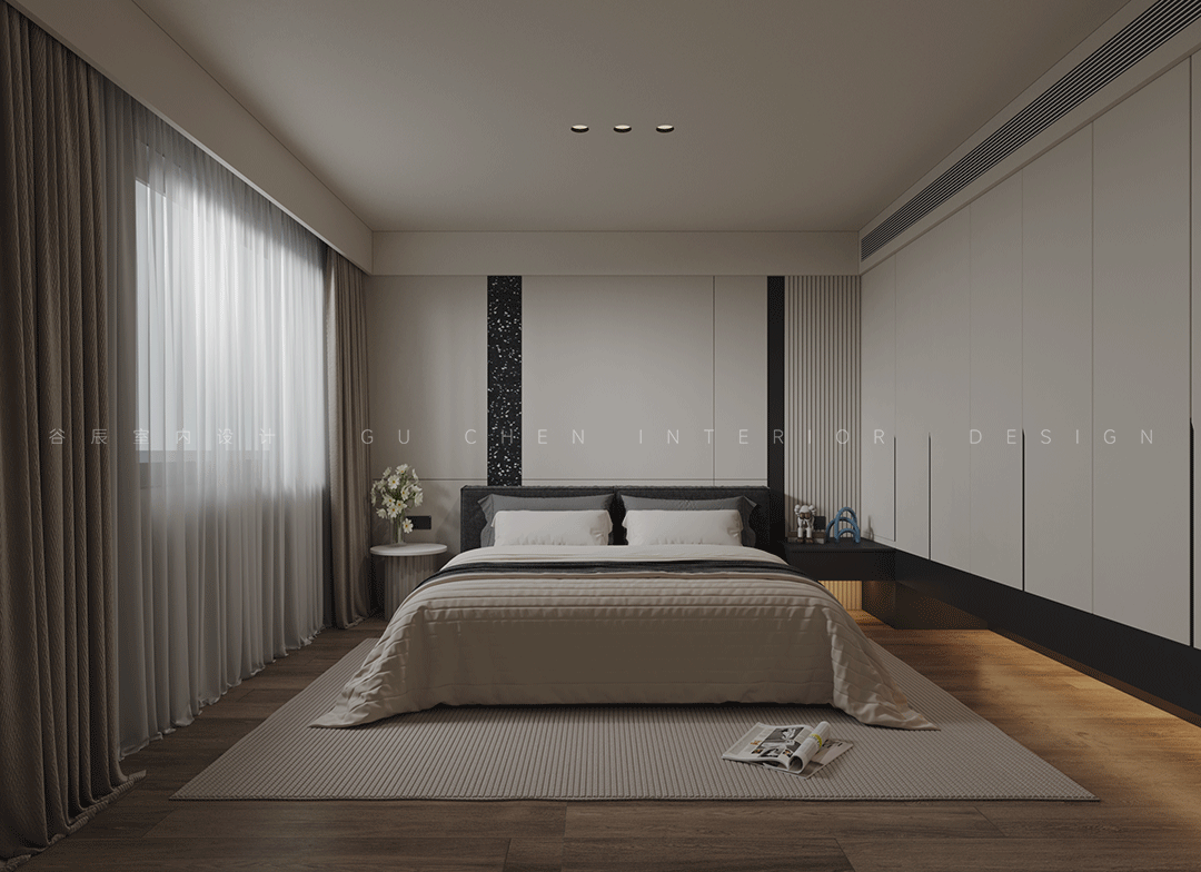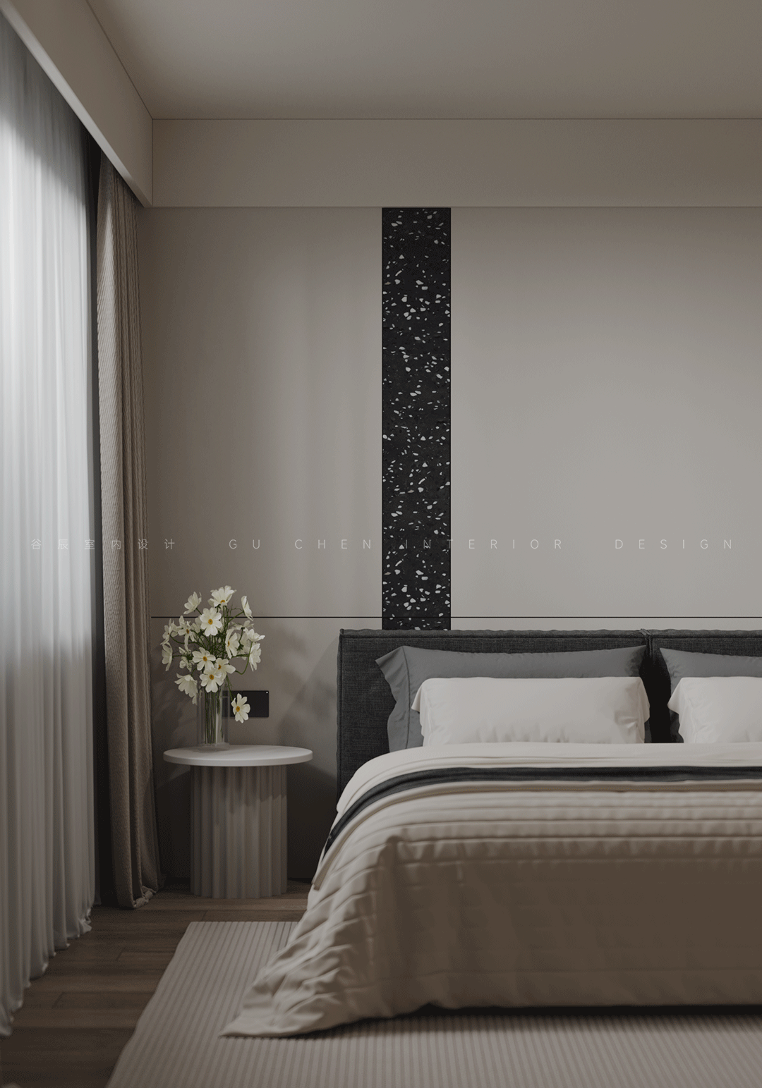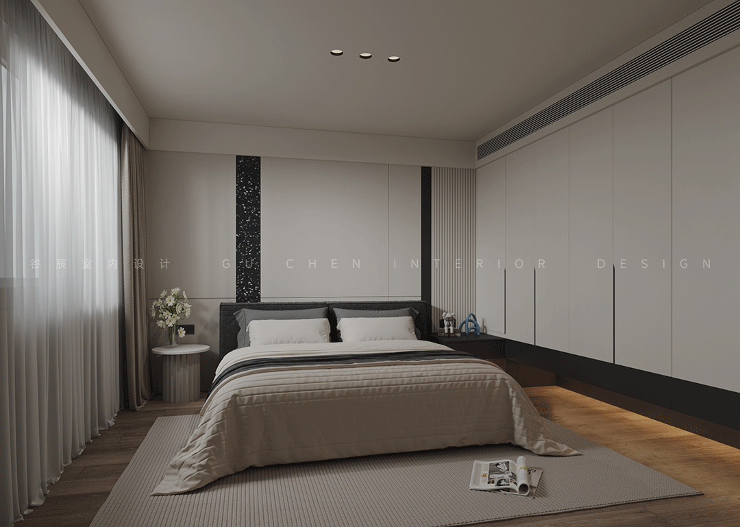 卧室以大面积的暖白色为主调,纯净的色调营造出安心的氛围,让温情得以肆意生长。细节与材质的变化为空间注入了活力,展现出高贵、细腻、优雅的品位。