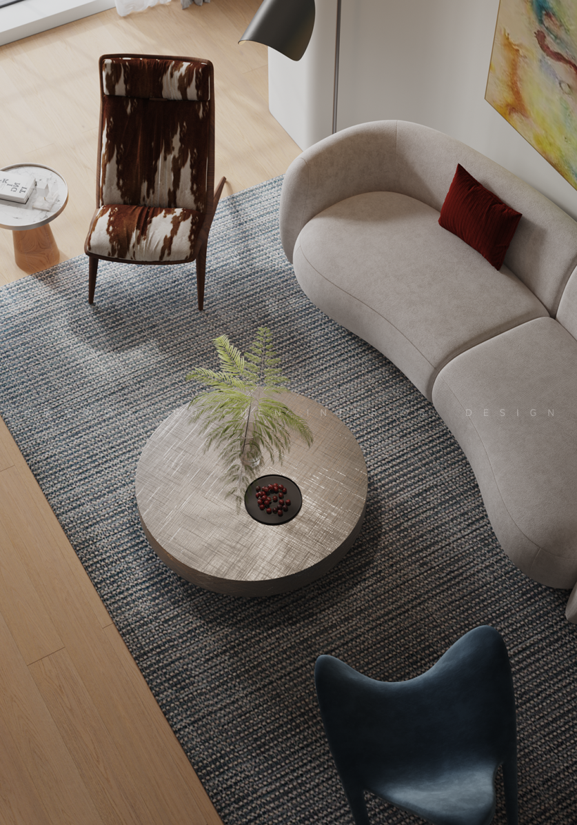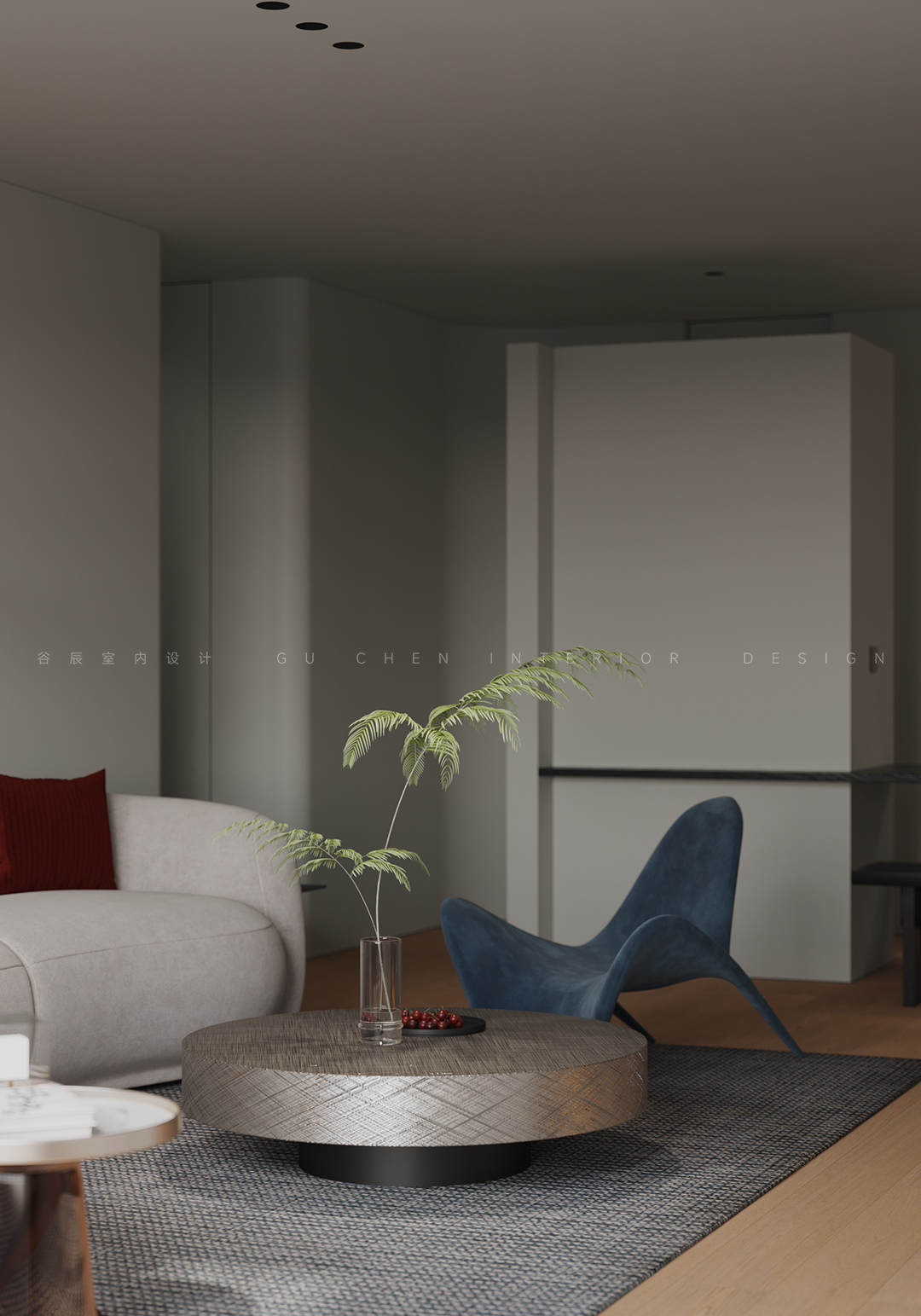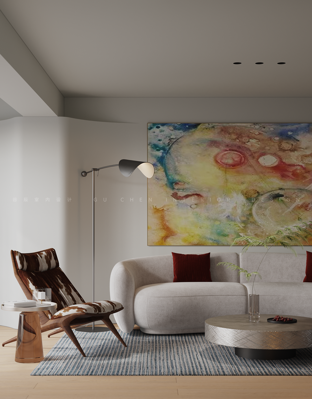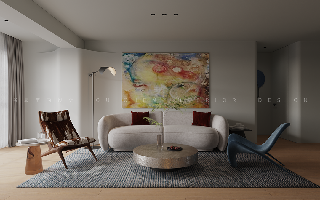没有棱角的米色弧形沙发,搭配蓝色休闲单椅,整体呈围合式布局,让家有更多的互动性。红色的炙热与蓝色的冷静,有恰到好处的“叛逆”,同时又有冰与火的浪漫。