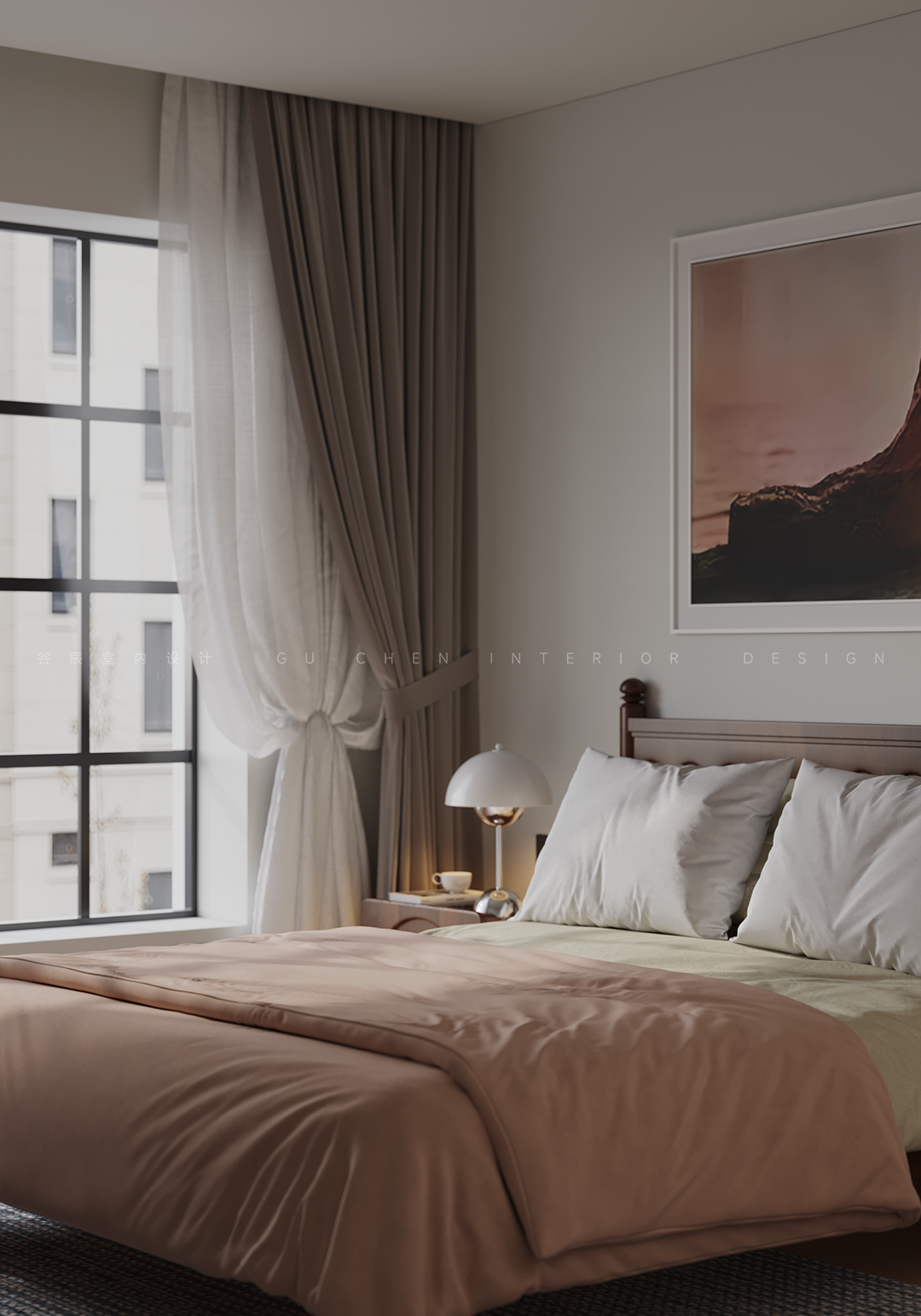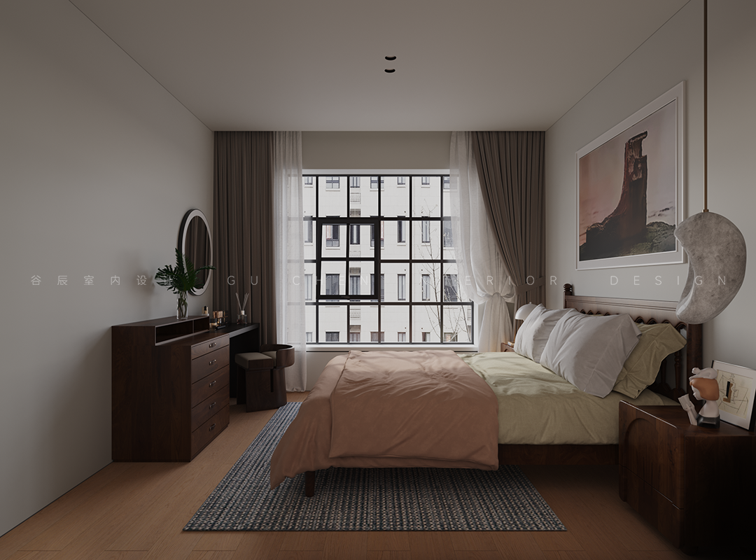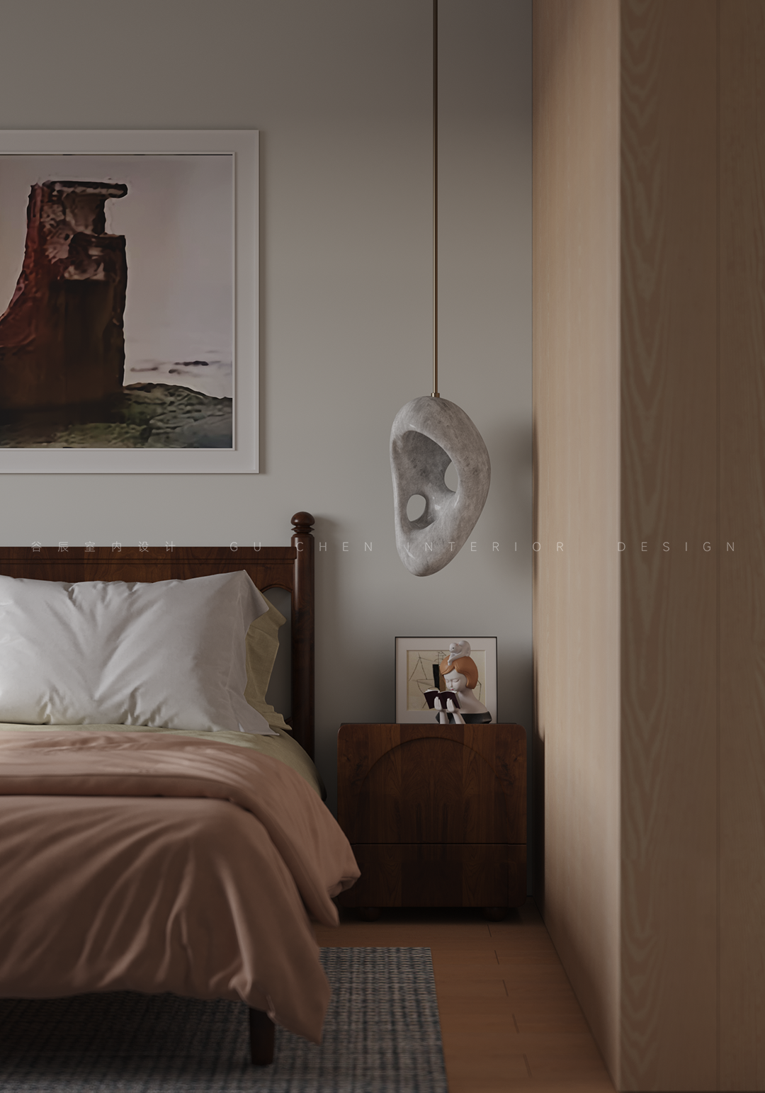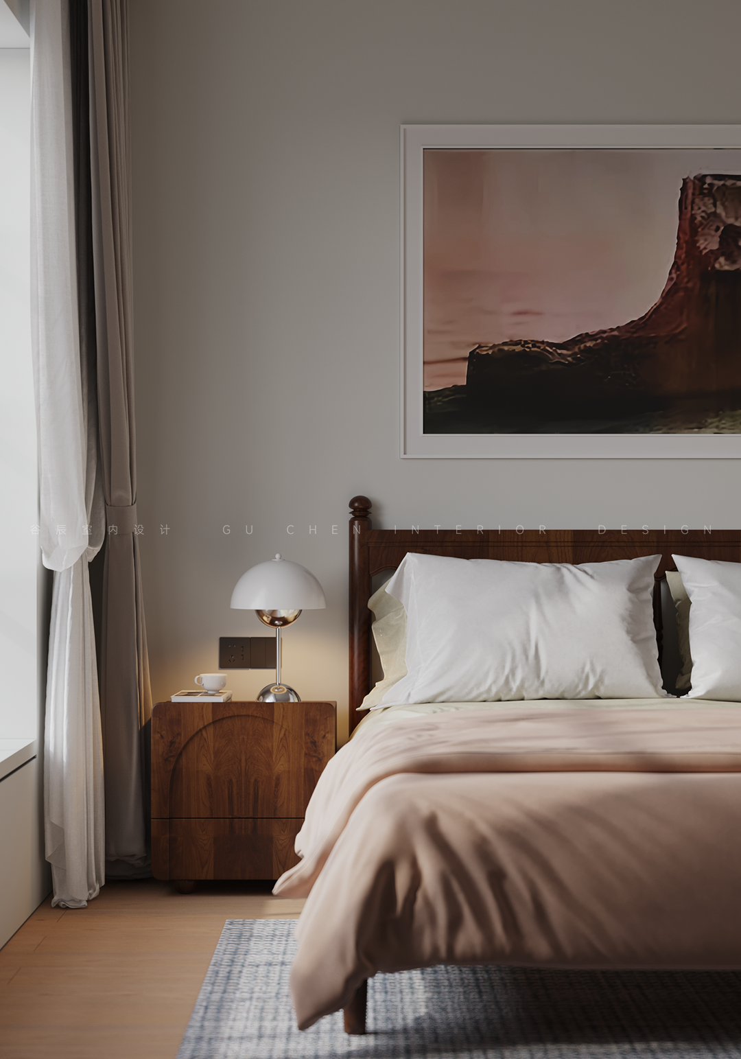 胡桃木的年轮肌理在卧室空间中流转,守护着每一个夜晚,诉说着每一个关于幸福的故事。