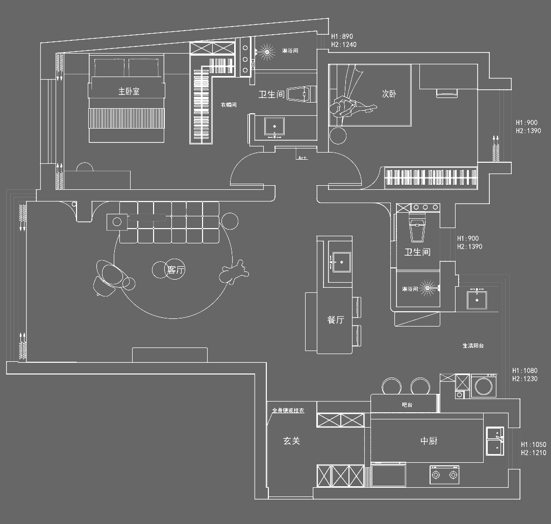 1.对原有格局进行重组,动线重新规划以达到闲适的状态