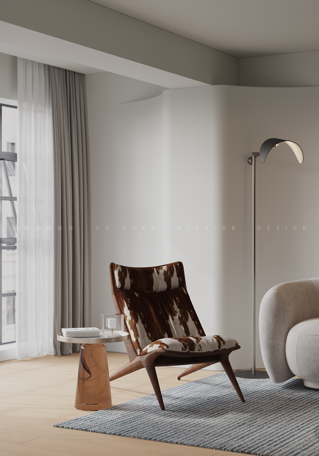 深咖牛奶躺椅一定是内敛空间中的显眼包了,奶呼呼的质感,肉眼可见的舒适,冲一杯咖啡,打开一本好书,美好加倍。
