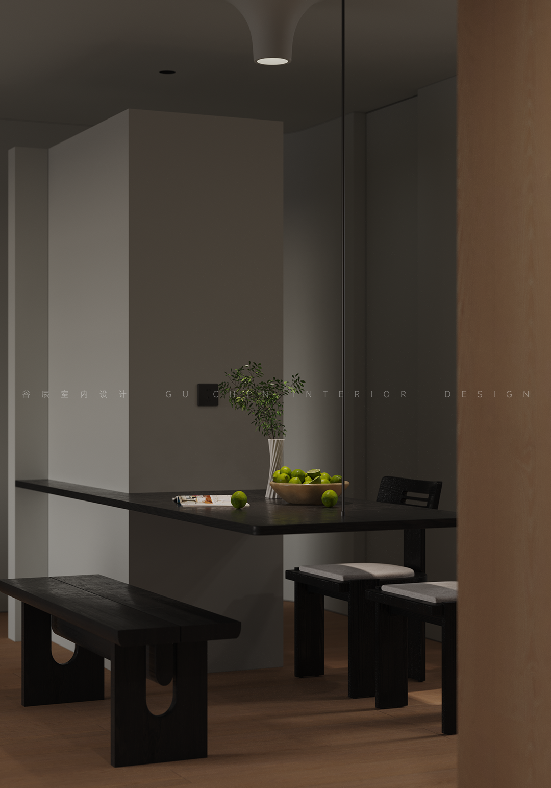 进入餐厅仿佛进入了魔法世界,科技感筒灯照在黑色悬浮餐桌上,等待着美味魔法的降临。