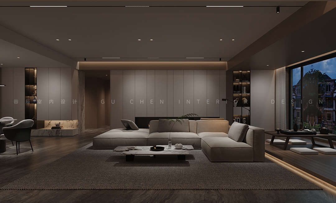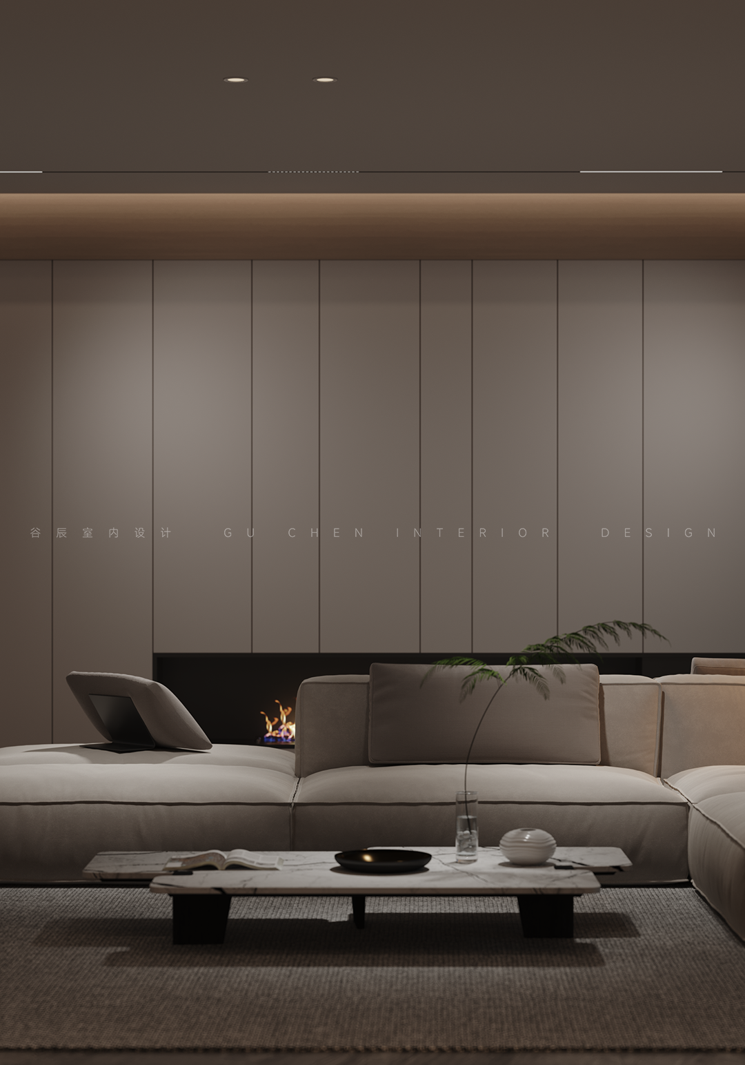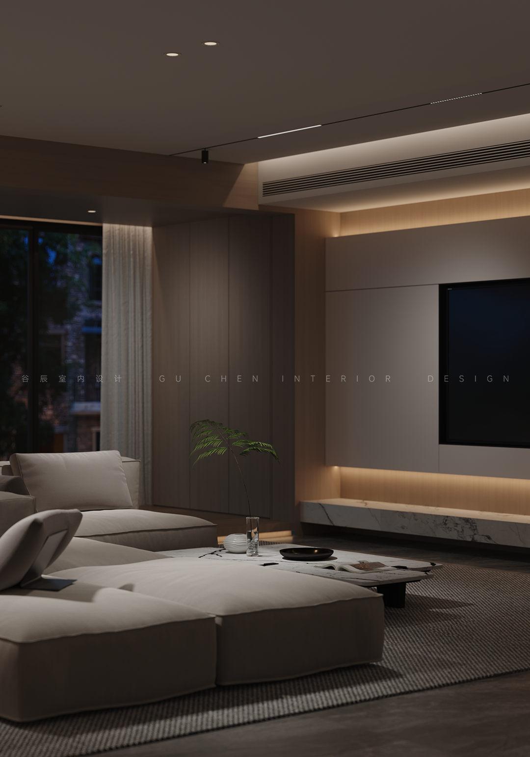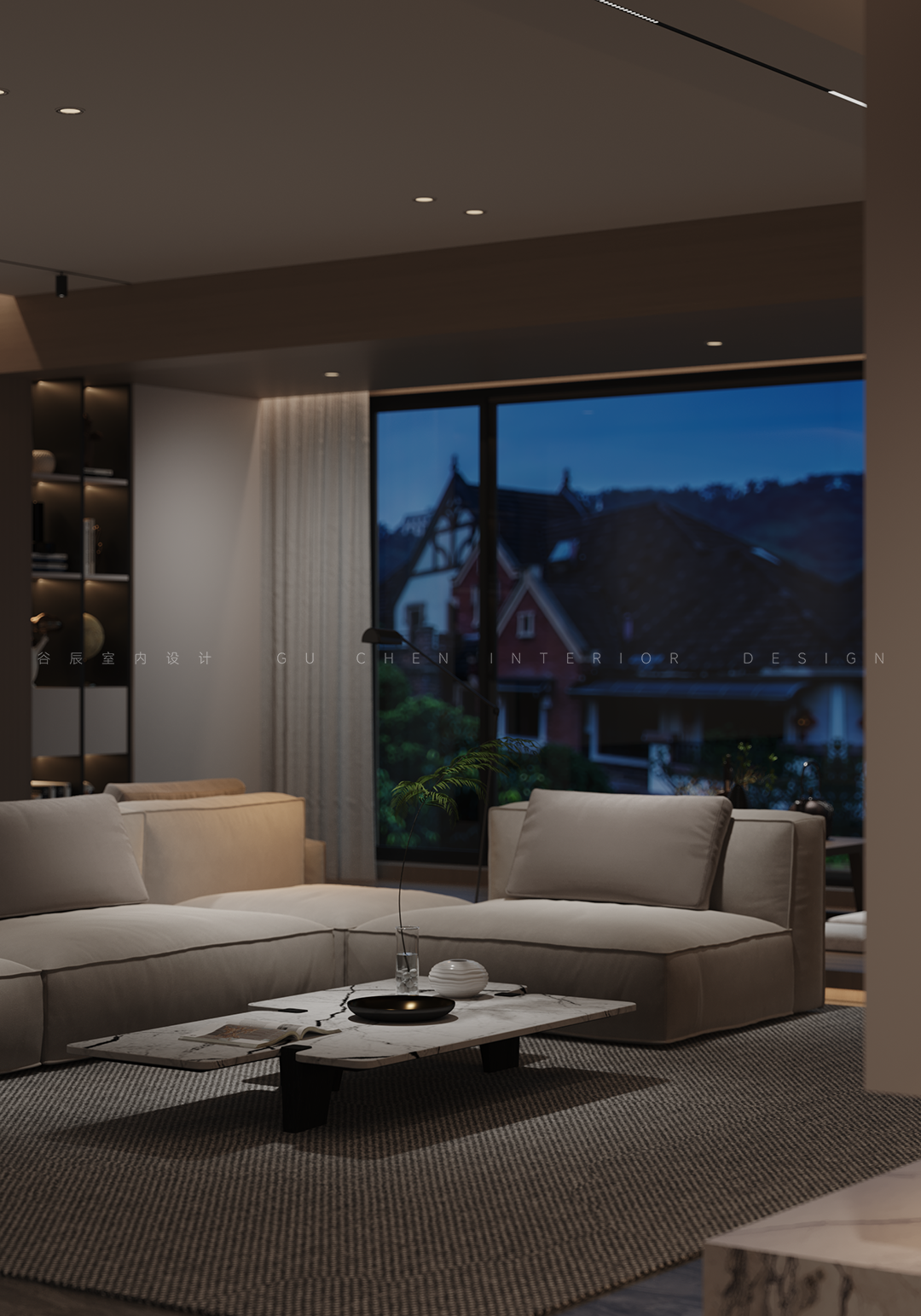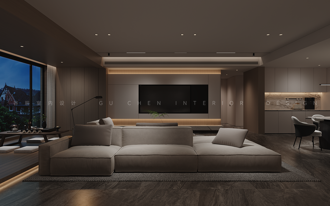 无主灯设计,拉伸了客厅空间,柔和灯光映照下,暖白色意式沙发散发着娴雅之姿,其触感仿佛温暖阳光中的柔丝,柔软而细腻。